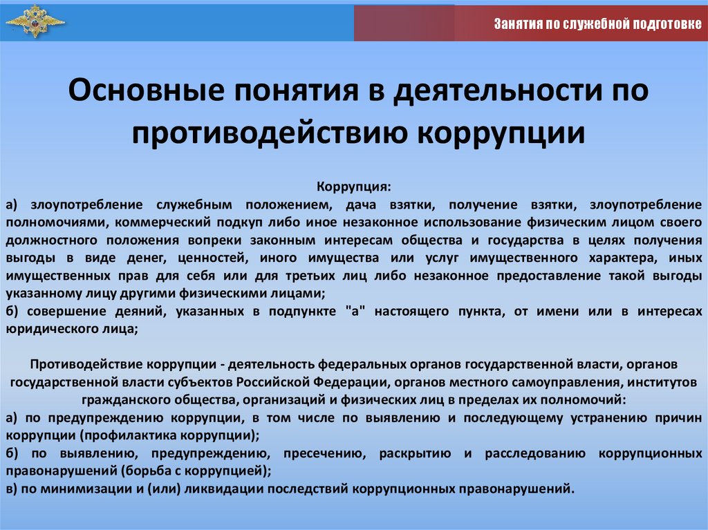Занятия по служебной подготовкеОсновные понятия в деятельности по