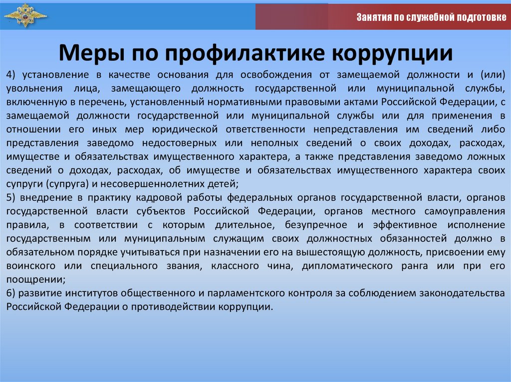 Занятия по служебной подготовкеМеры по профилактике коррупции