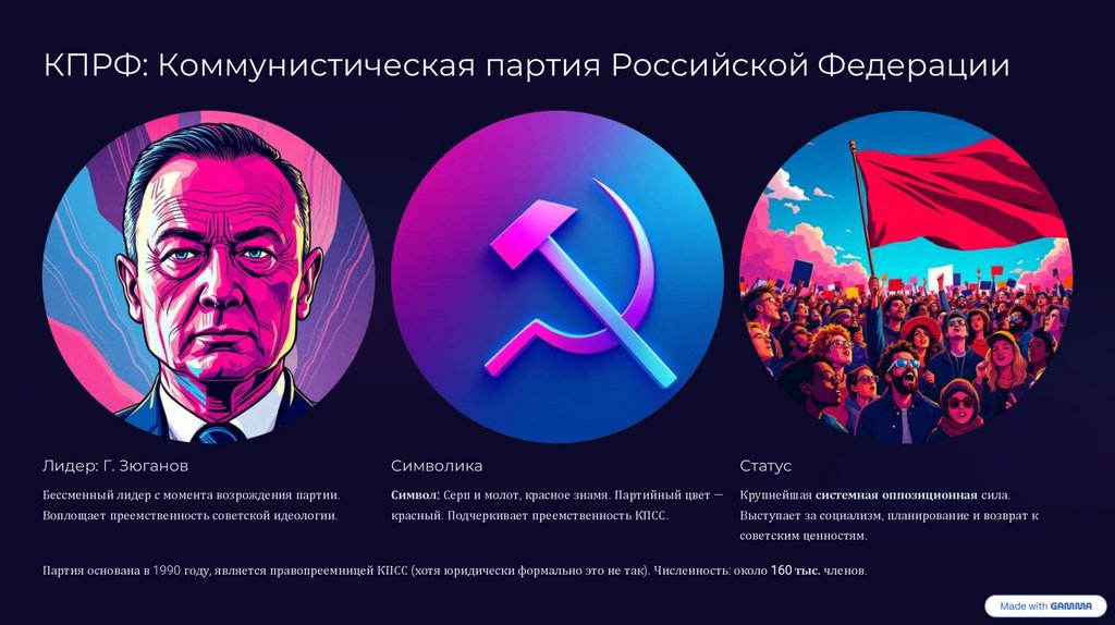 КПРФ: Коммунистическая партия Российской ФедерацииЛидер: Г. Зюганов