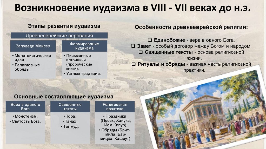 Возникновение иудаизма в VIII - VII веках до н.э.Этапы развития иудаизма