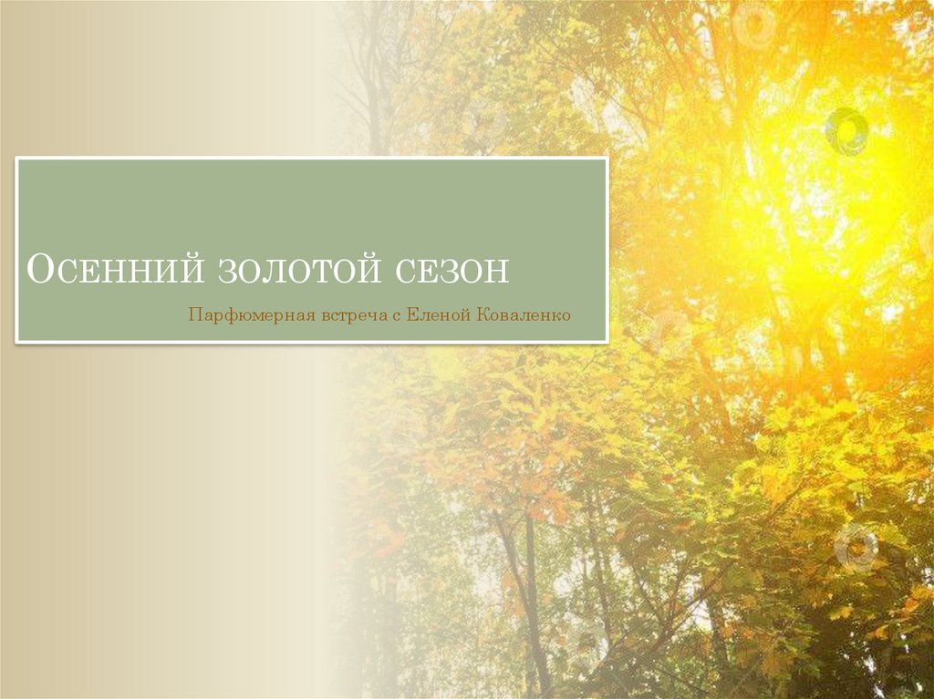 ОСЕННИЙ ЗОЛОТОЙ СЕЗОНПарфюмерная встреча с Еленой Коваленко