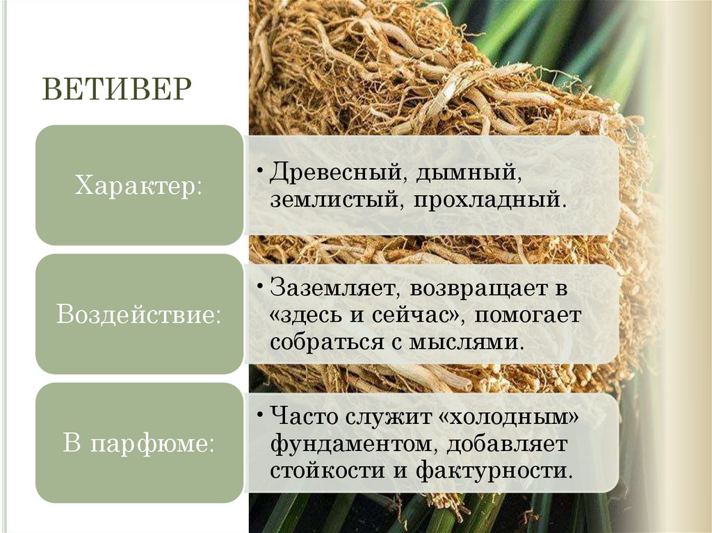ВЕТИВЕРХарактер: