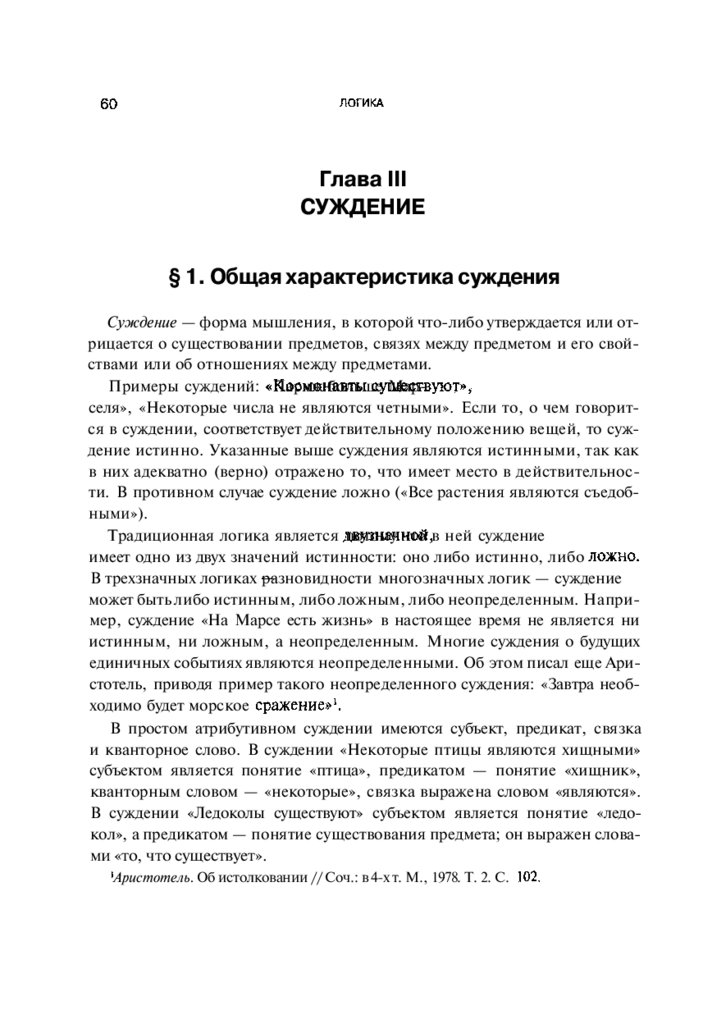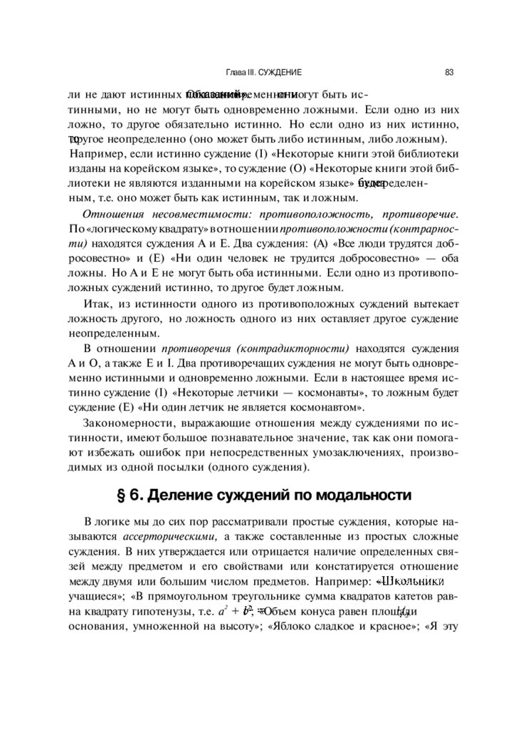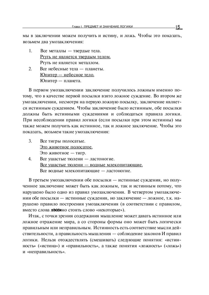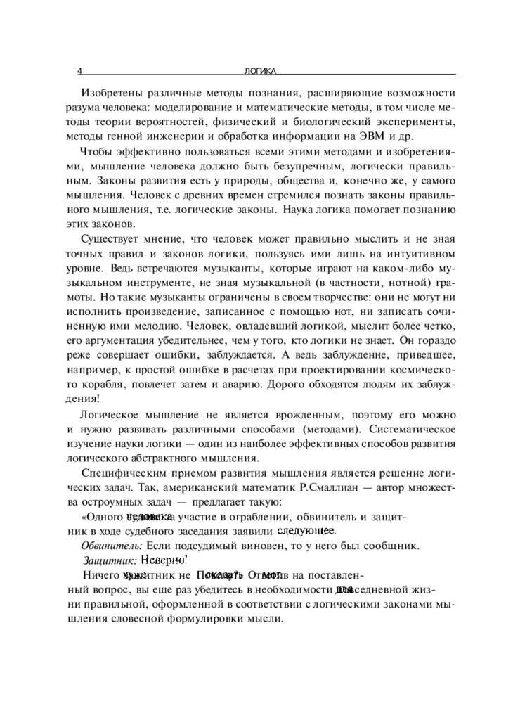 Кроме изложения основных форм правильного мышления: понятий, суждений и умозаключений, — в книге даются виды доказательства и опровержения, типы многочисленных логических ошибок, встречающихся в мышлении, разновидности форм гипотез и другой логический материал. Автором