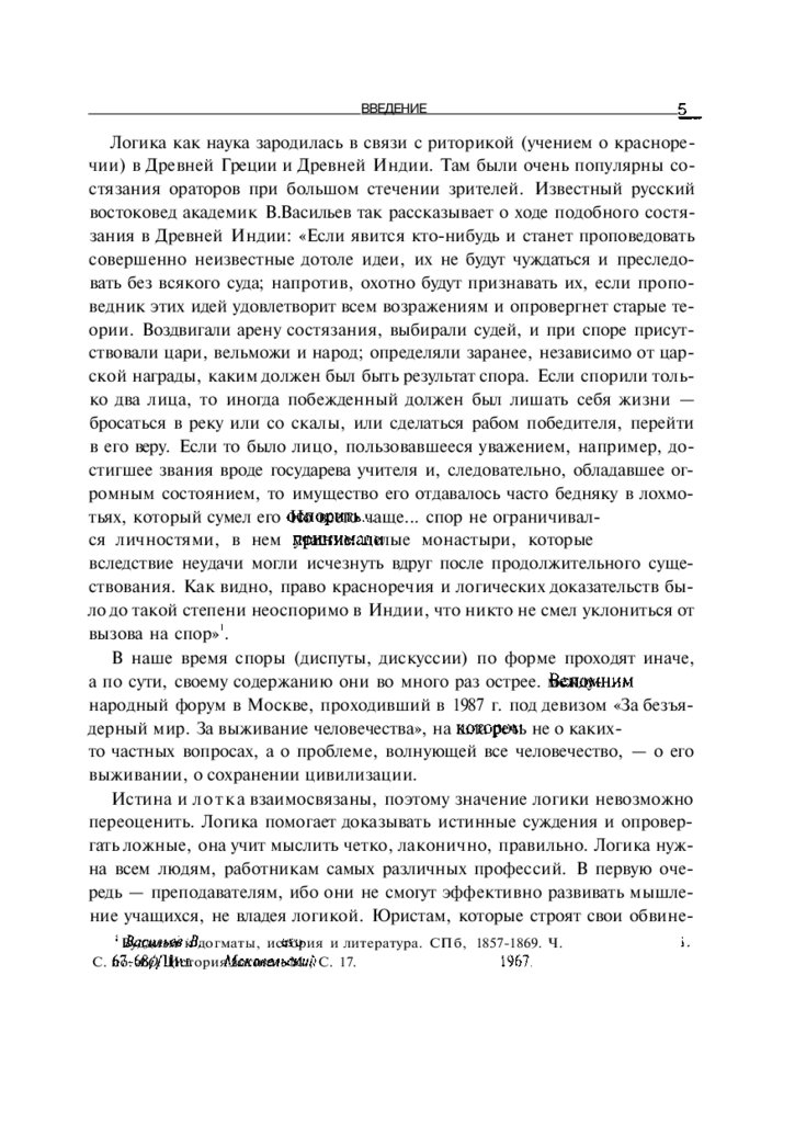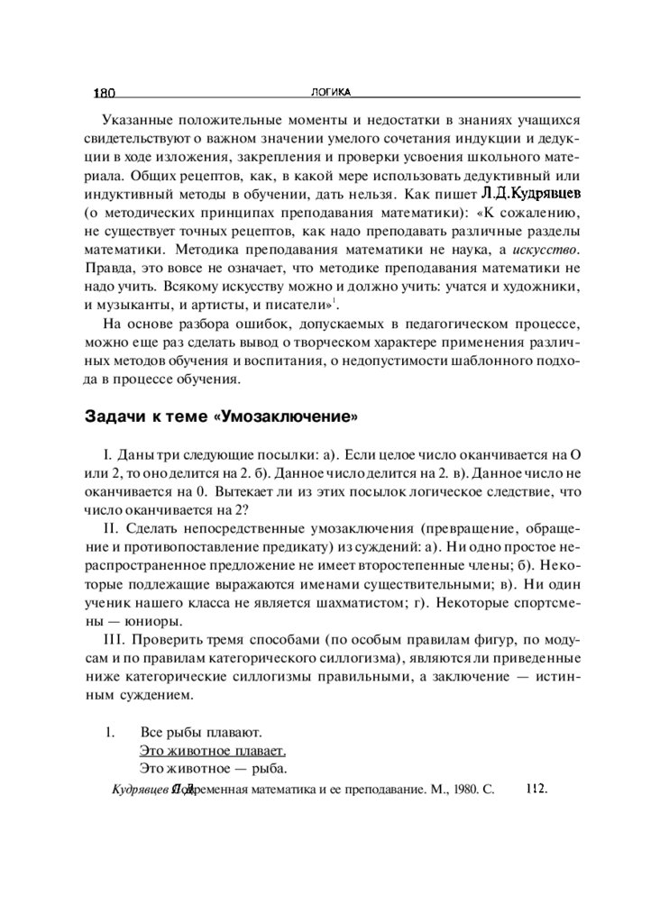 переоценить. Логика помогает доказывать истинные суждения и опровергать ложные, она учит мыслить четко, лаконично, правильно. Логика нужна всем людям, работникам самых различных профессий. В первую очередь — преподавателям, ибо они не смогут эффективно развивать мышление учащихся, не владея логикой. Юристам, которые строят свои обвине1
