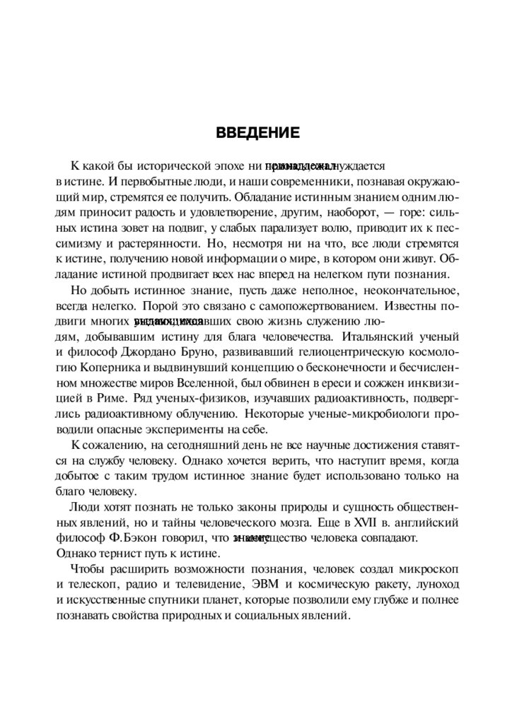 в истине. И первобытные люди, и наши современники, познавая окружающий мир, стремятся ее получить. Обладание истинным знанием одним людям приносит радость и удовлетворение, другим, наоборот, — горе: сильных истина зовет на подвиг, у слабых парализует волю, приводит их к пессимизму и растерянности. Но, несмотря ни на что, все люди стремятся