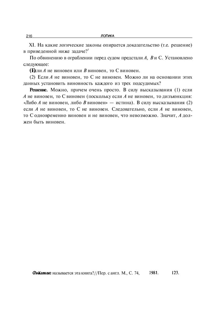 Специфическим приемом развития мышления является решение логических задач. Так, американский математик Р.Смаллиан — автор множества остроумных задач — предлагает такую: