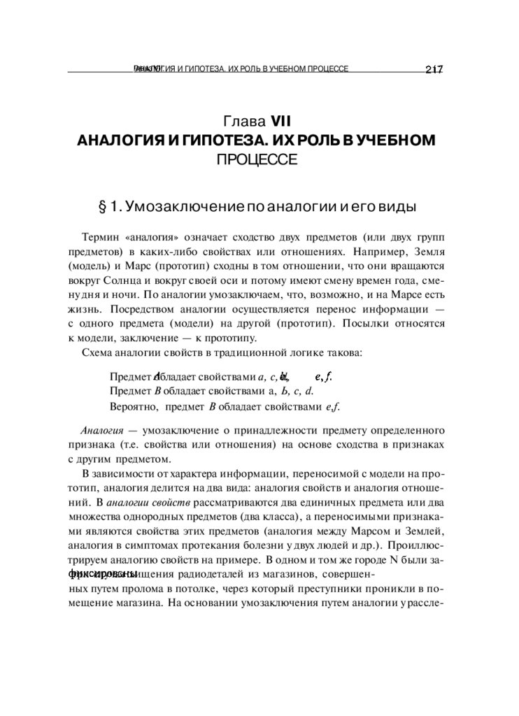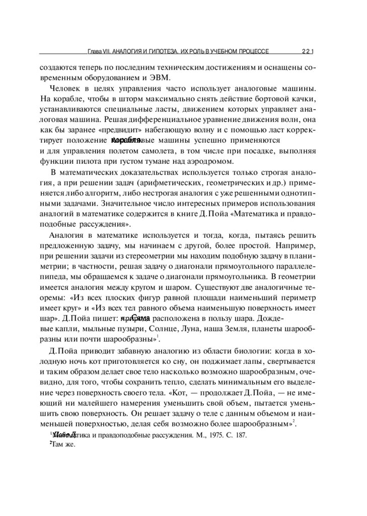 Глава VII. Аналогия и гипотеза. Их роль в учебном процессе