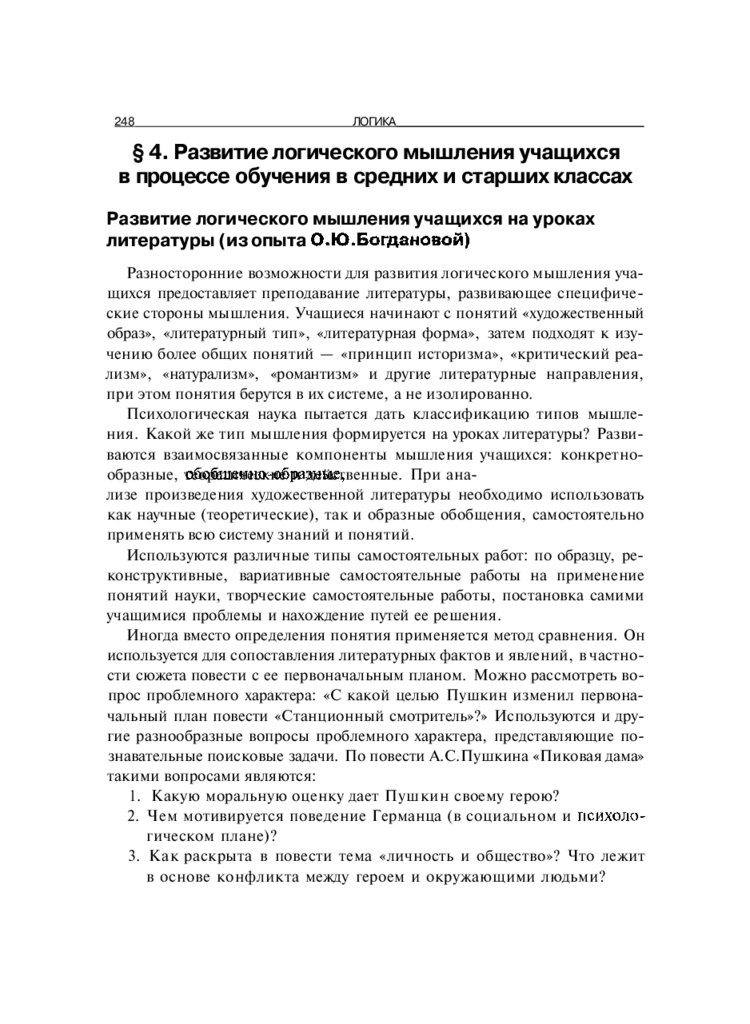 § 4. Развитие логического мышления учащихся в процессе обучения