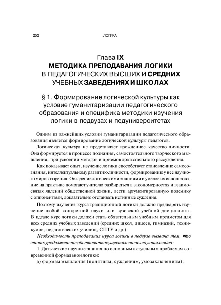 Учебник ориентирован на преподавание логики в педагогических учебных заведениях. Поэтому в него включена оригинальная глава по методике преподавания логики