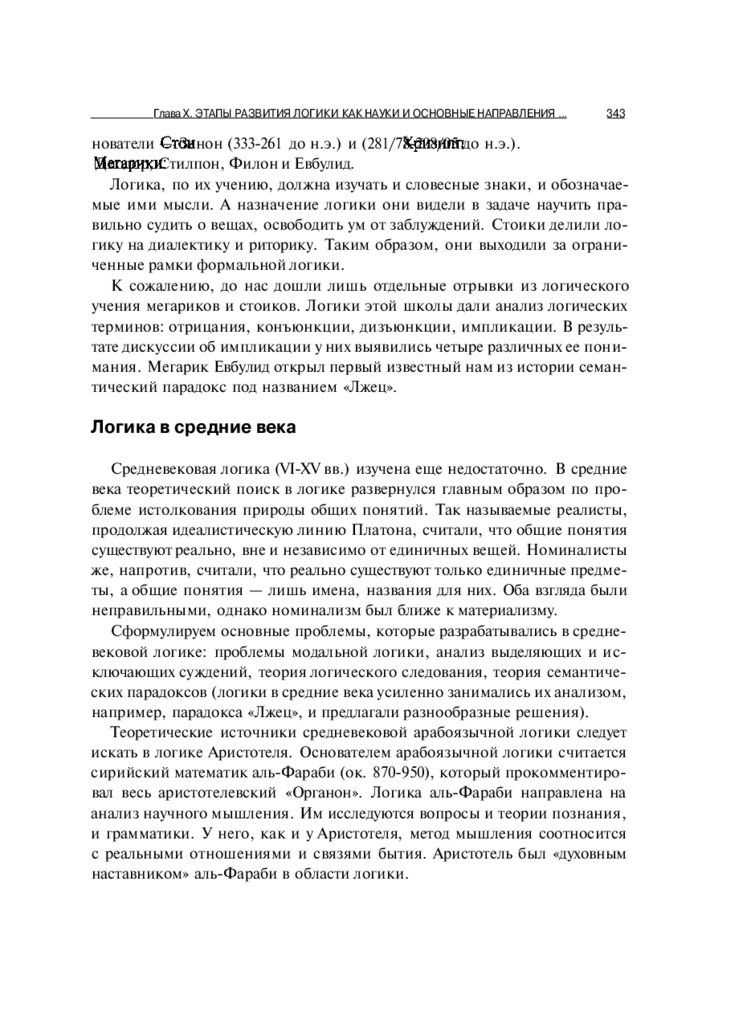 Последняя глава раскрывает этапы развития логики как науки и основные направления