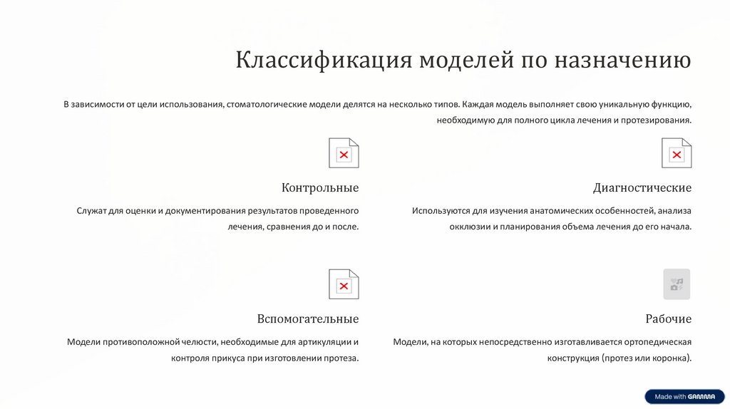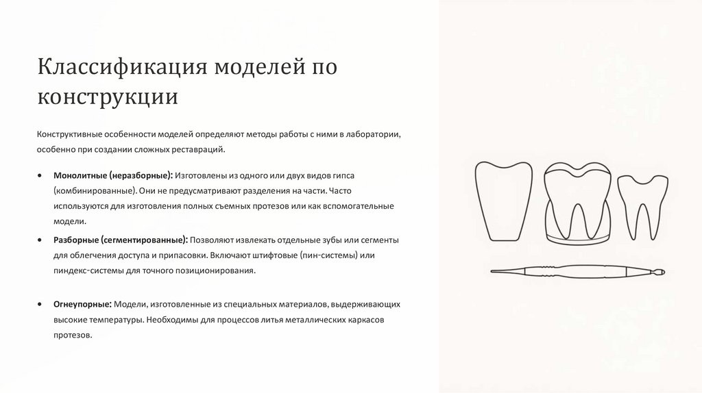 Классификация моделей по назначениюВ зависимости от цели использования, стоматологические модели делятся на несколько типов. Каждая модель выполняет свою уникальную функцию,