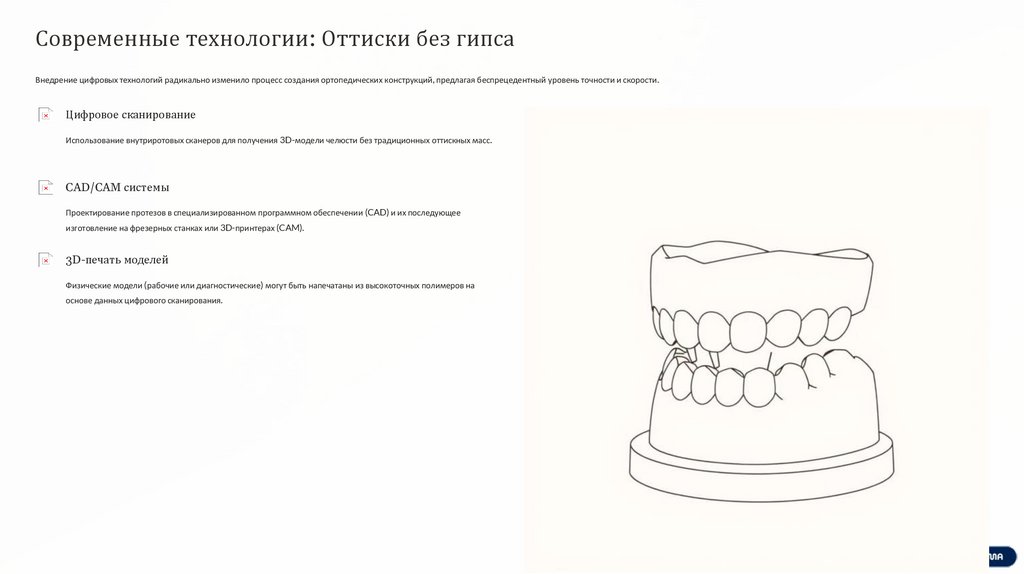 Современные технологии: Оттиски без гипсаВнедрение цифровых технологий радикально изменило процесс создания ортопедических конструкций, предлагая беспрецедентный уровень точности и скорости.