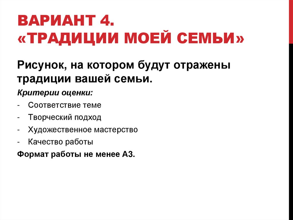 ВАРИАНТ 4.«ТРАДИЦИИ МОЕЙ СЕМЬИ»