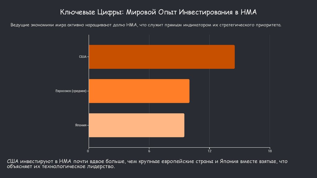 Ключевые Цифры: Мировой Опыт Инвестирования в НМАВедущие экономики мира активно наращивают долю НМА, что служит прямым индикатором их стратегического приоритета.