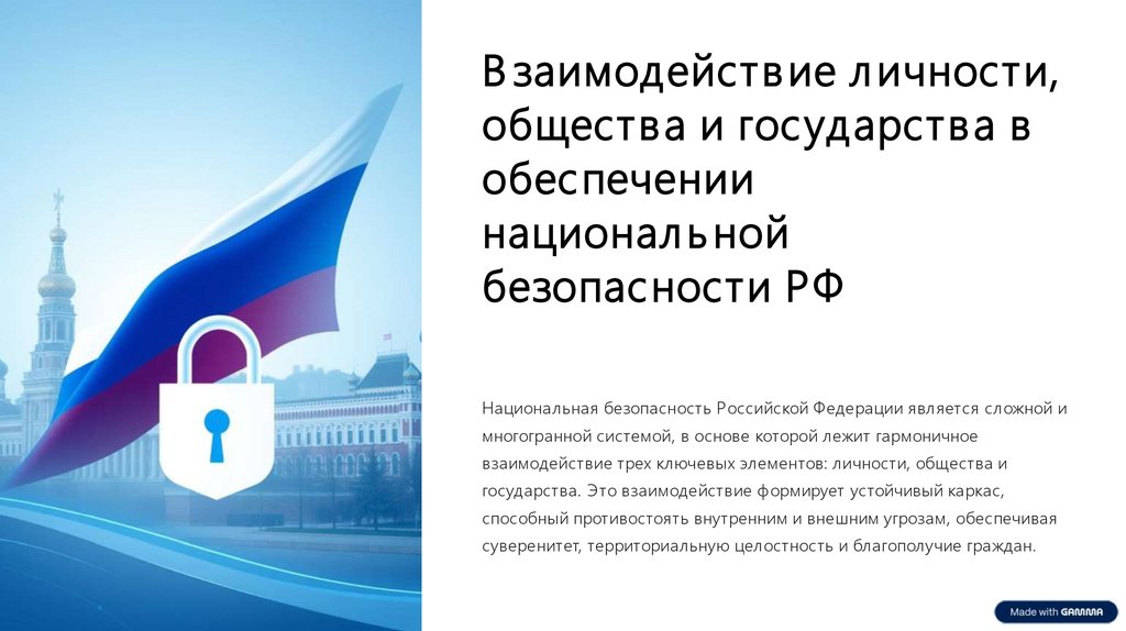 Перспективы развития национальной безопасности РФ связаны с дальнейшим углублением взаимодействия