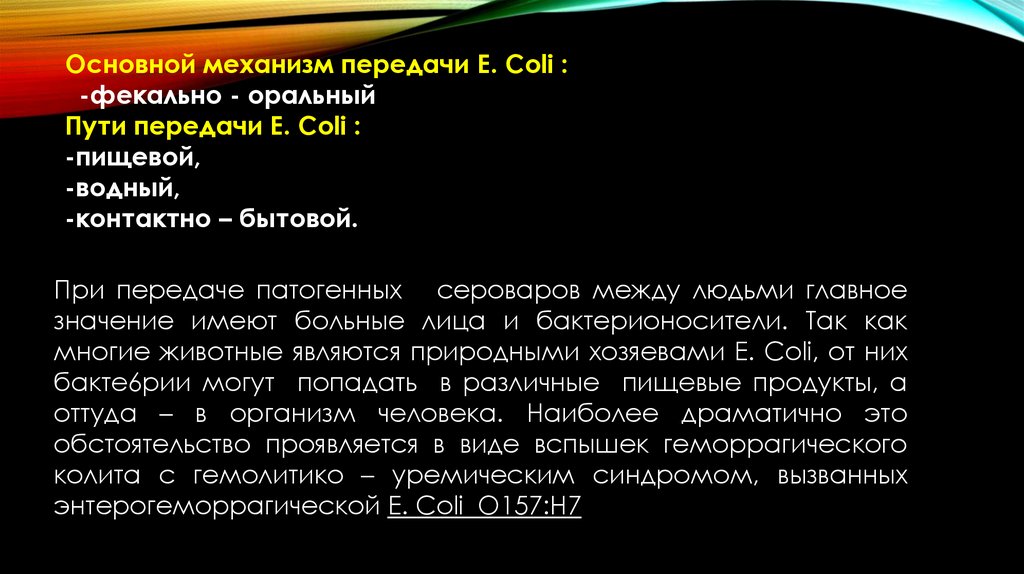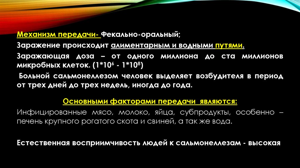 • Механизм передачи – фекально-оральный (путь – алиментарный,