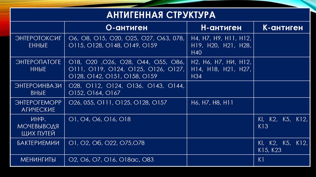АНТИГЕННАЯ СТРУКТУРА• Имеют О- и Н- антигены, по которым
