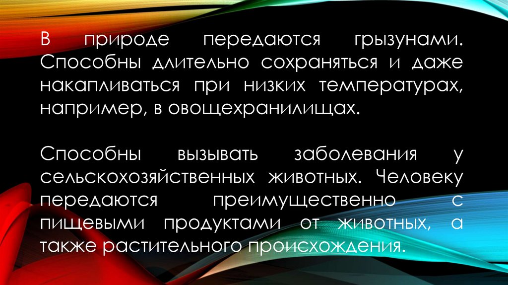 • Важнейший источник инфекции- сельскохозяйственные животные