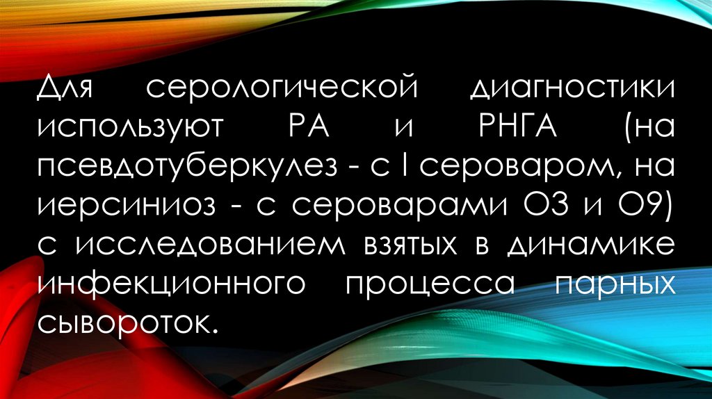 -Для серологической диагностики используют РИФ, РА, РПГА, РСК.