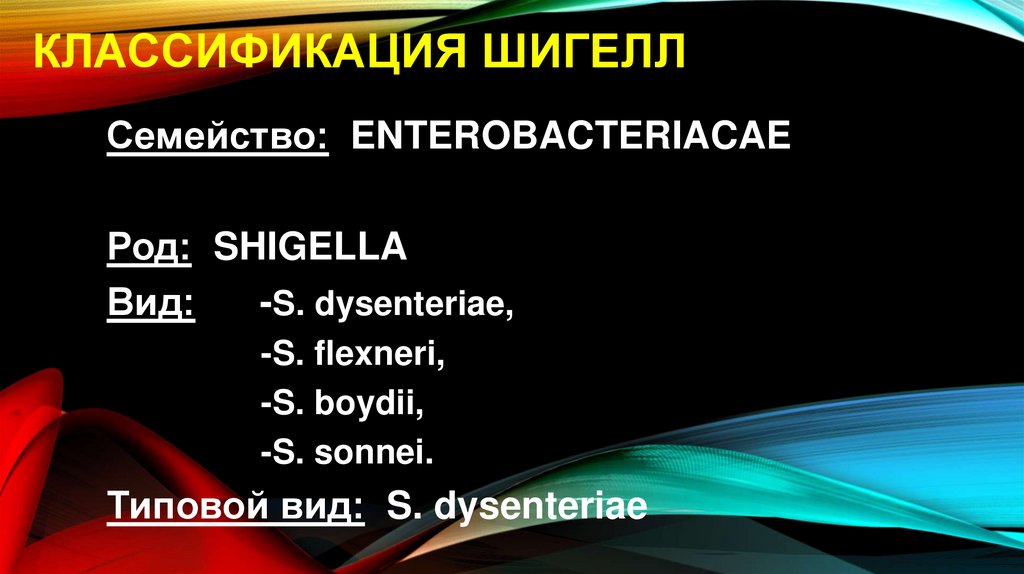 КЛАССИФИКАЦИЯ ШИГЕЛЛСемейство: ENTEROBACTERIACAE