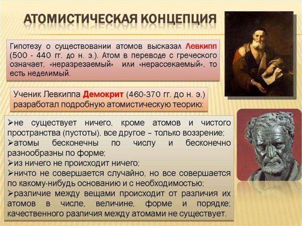 атомизма – дискретного строения материи. Отцами этой концепции