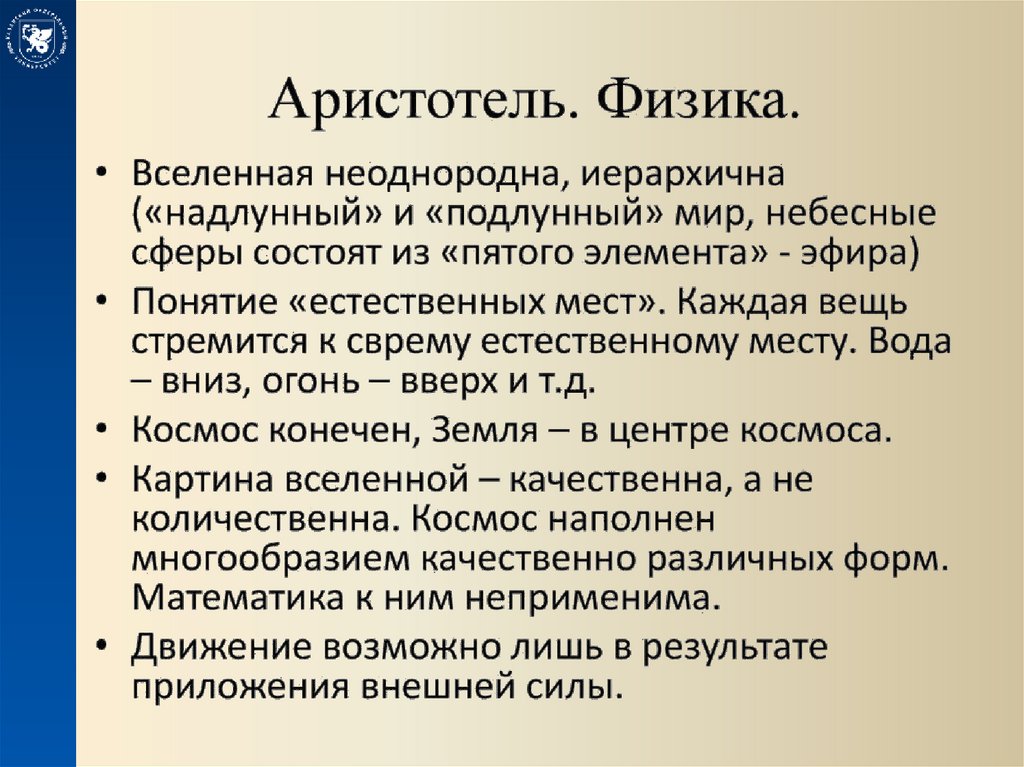 (от Аристотеля, до Коперника)