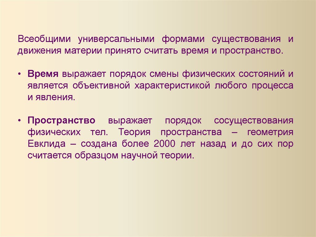 пространства и времени в частном случае