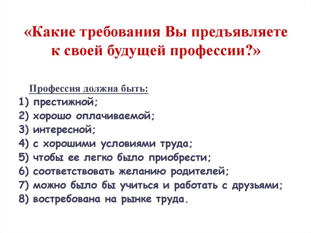 «Какие требования Вы предъявляетек своей будущей профессии?»