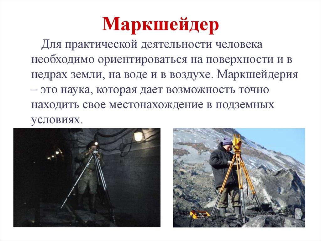 недрах земли, на воде и в воздухе. Маркшейдерия