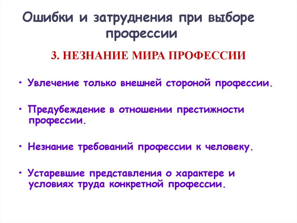 3. НЕЗНАНИЕ МИРА ПРОФЕССИИ