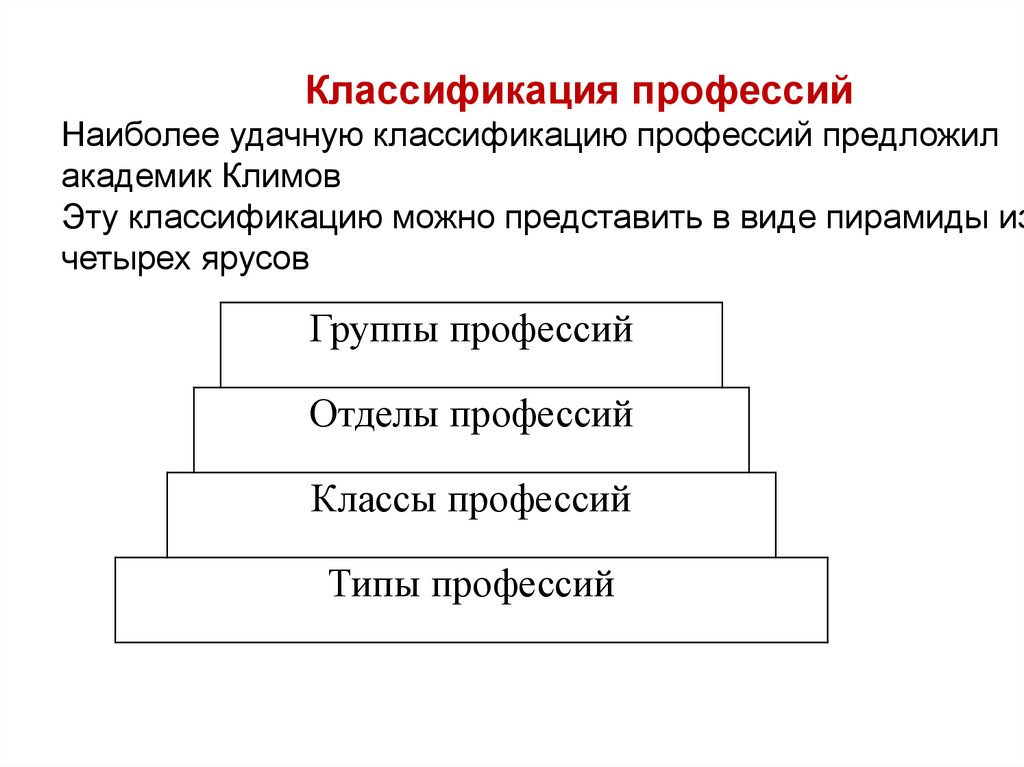 Классификация профессийНаиболее удачную классификацию профессий предложил