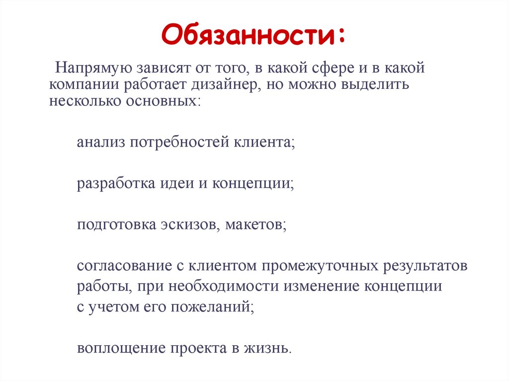 Обязанности:Напрямую зависят от того, в какой сфере и в какой