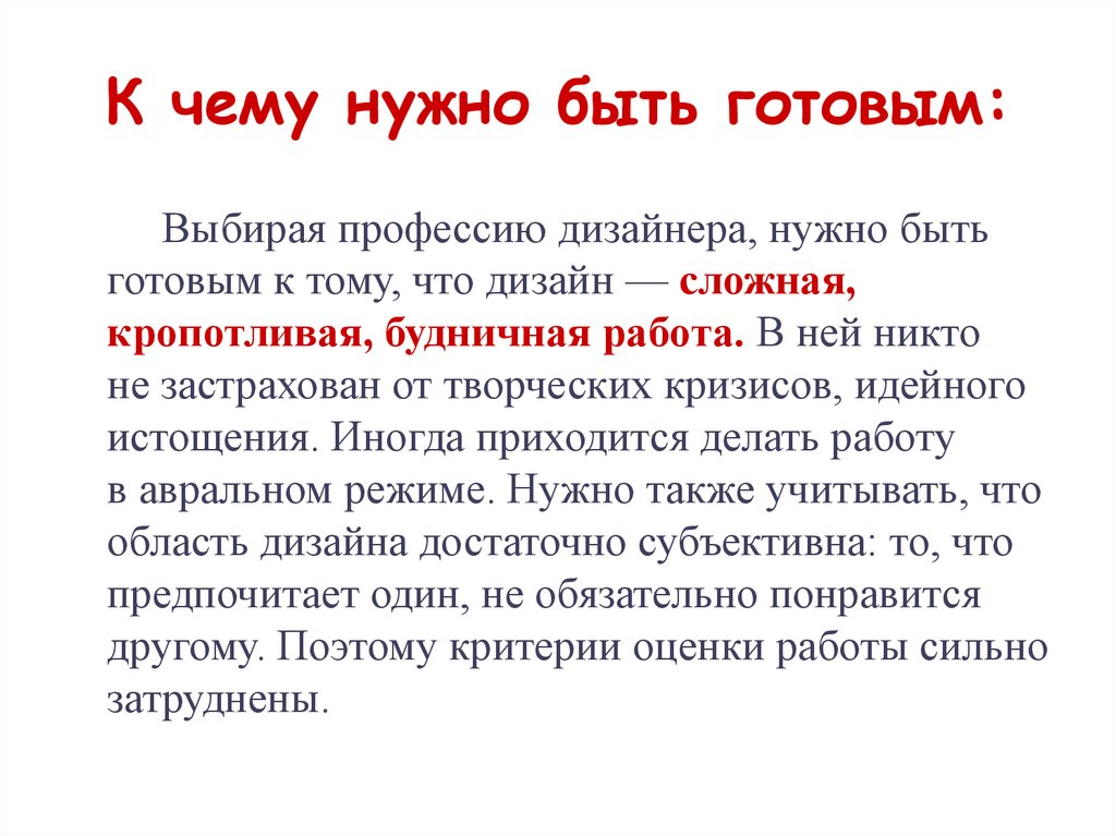 К чему нужно быть готовым:Выбирая профессию дизайнера, нужно быть