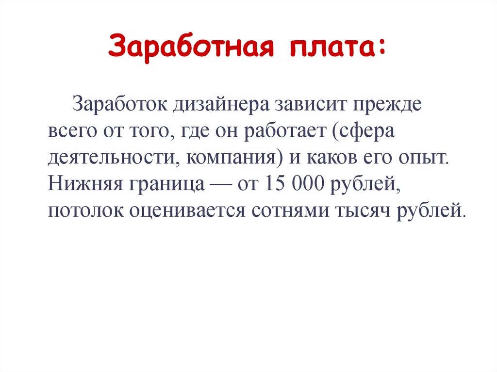 Заработная плата:Заработок дизайнера зависит прежде