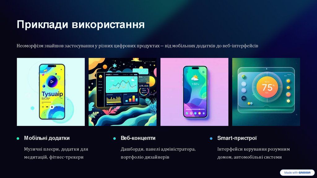 Приклади використанняНеоморфізм знайшов застосування у різних цифрових продуктах — від мобільних додатків до веб-інтерфейсів