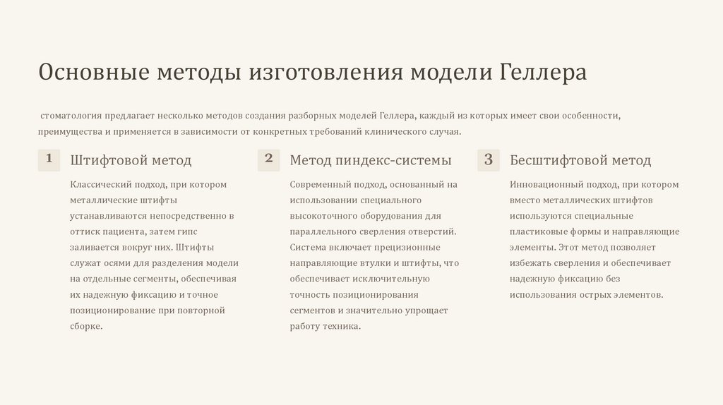 Основные методы изготовления модели Геллерастоматология предлагает несколько методов создания разборных моделей Геллера, каждый из которых имеет свои особенности,