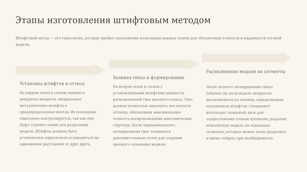 Этапы изготовления штифтовым методомШтифтовой метод — это технология, которая требует выполнения нескольких важных этапов для обеспечения точности и надежности готовой