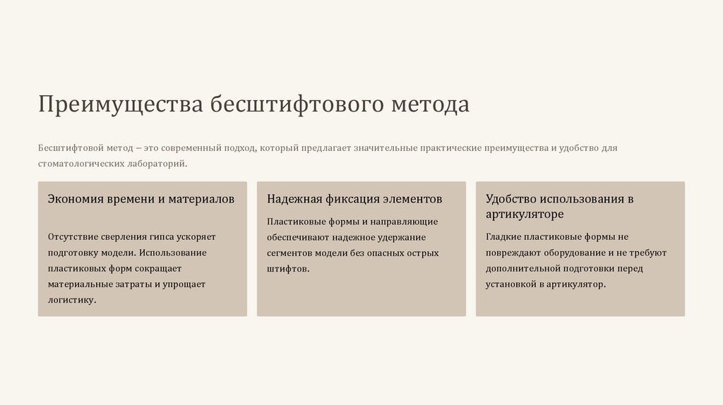 Преимущества бесштифтового методаБесштифтовой метод – это современный подход, который предлагает значительные практические преимущества и удобство для