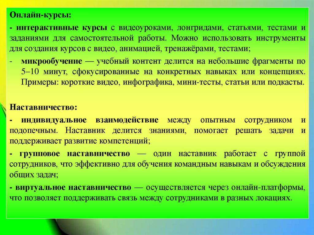 – на рабочем месте: наставничество, шедоуинг, решение более сложных
