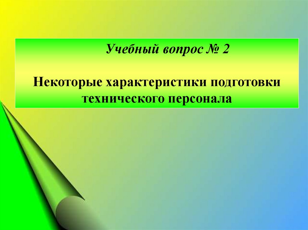 Учебный вопрос № 2Некоторые характеристики подготовки