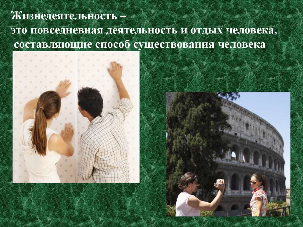 Жизнедеятельность –это повседневная деятельность и отдых человека,