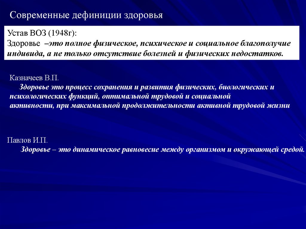 Современные дефиниции здоровьяУстав ВОЗ (1948г):