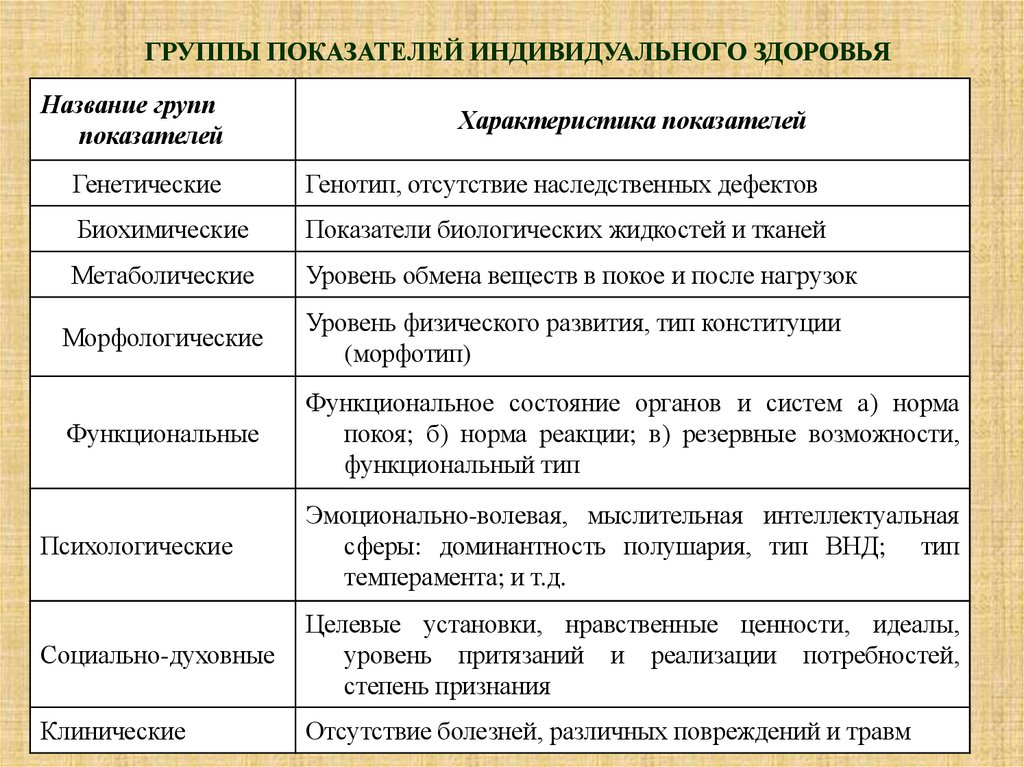 ГРУППЫ ПОКАЗАТЕЛЕЙ ИНДИВИДУАЛЬНОГО ЗДОРОВЬЯНазвание групп