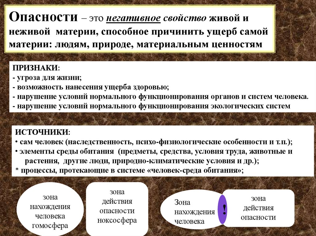 Опасности – это негативное свойство живой инеживой материи, способное причинить ущерб самой