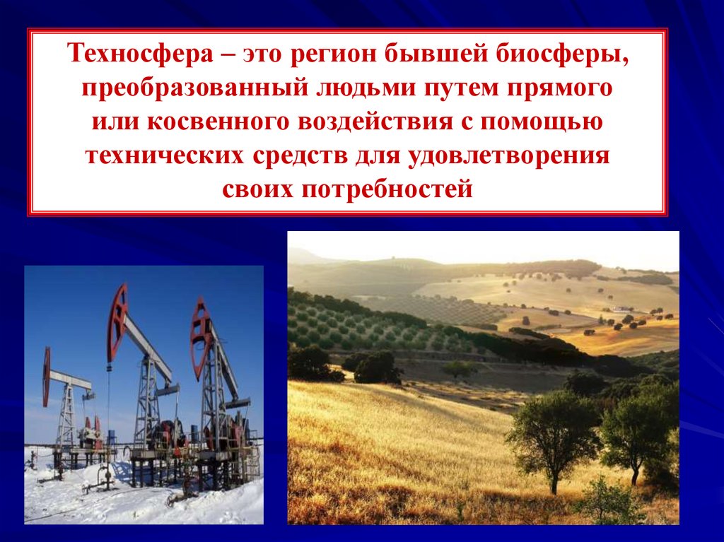 Техносфера – это регион бывшей биосферы,преобразованный людьми путем прямого