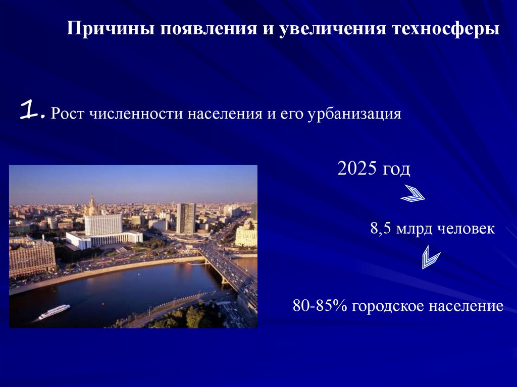 Причины появления и увеличения техносферы1. Рост численности населения и его урбанизация