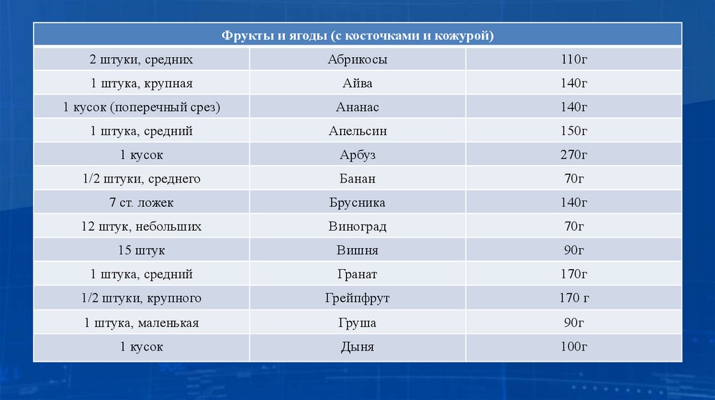 Фрукты и ягоды (с косточками и кожурой)2 штуки, средних