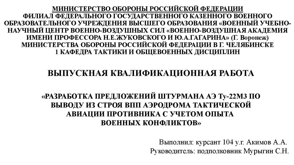 ОБРАЗОВАТЕЛЬНОГО УЧРЕЖДЕНИЯ ВЫСШЕГО ОБРАЗОВАНИЯ «ВОЕННЫЙ УЧЕБНОНАУЧНЫЙ ЦЕНТР ВОЕННО-ВОЗДУШНЫХ СИЛ «ВОЕННО-ВОЗДУШНАЯ АКАДЕМИЯ