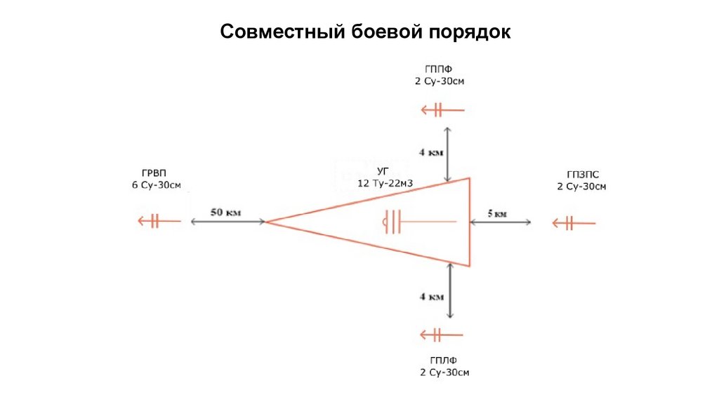 Боевой порядок ударной группы по маршруту и при пролете ЛБС4.