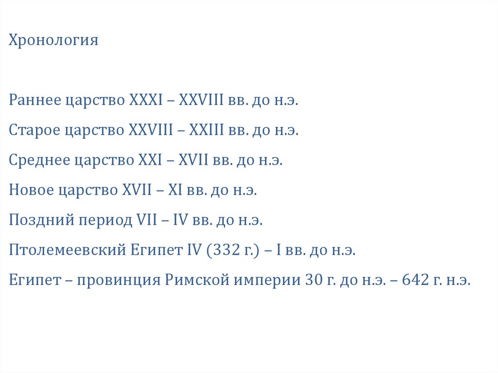ХронологияРаннее царство XXXI – XXVIII вв. до н.э.